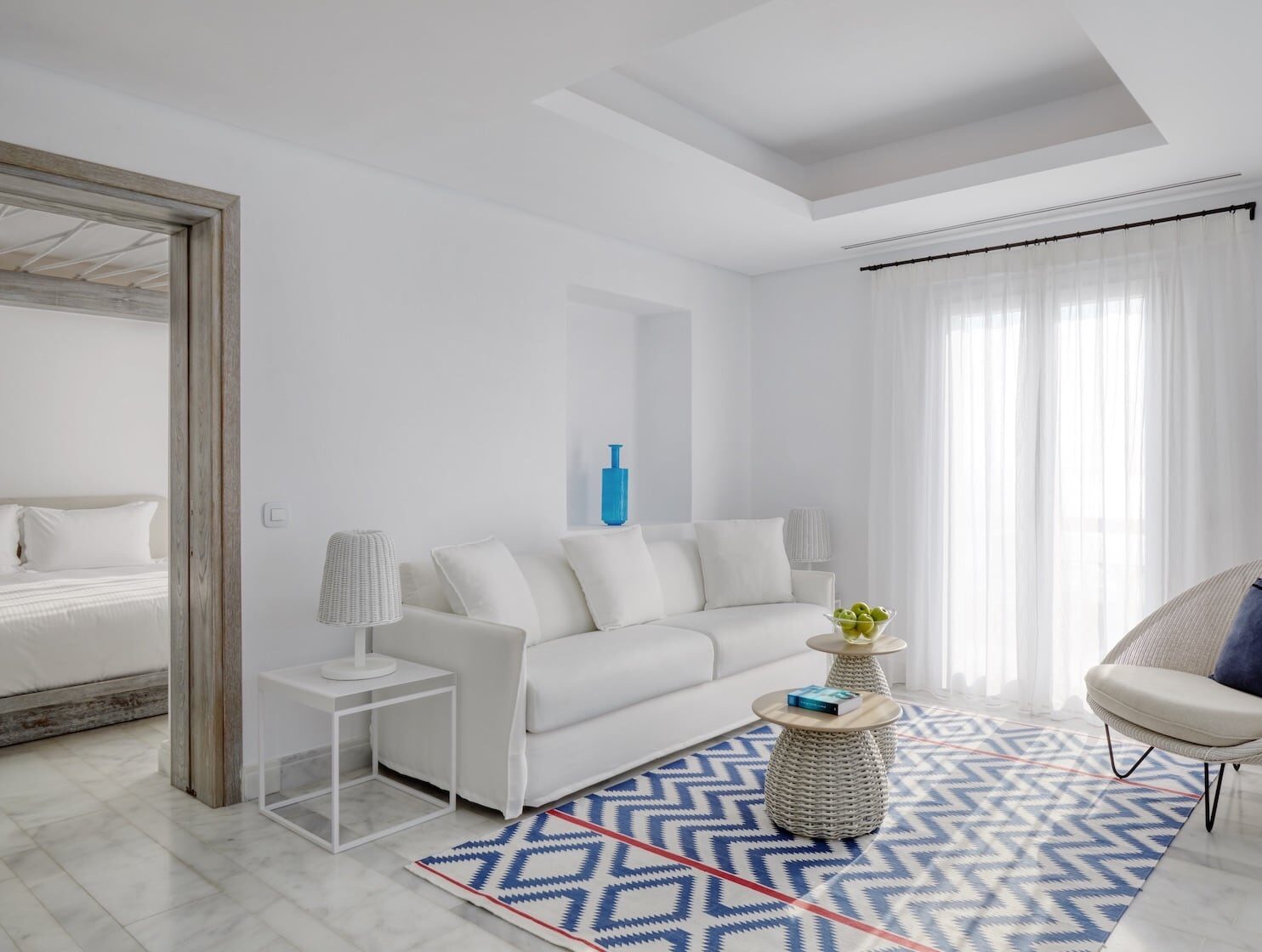 A modernist hotel punctuated by olive trees, herbs, bougainvillaea and fuchsia, Kalesma Mykonos draws on both the culture and mythology of Mykonos. It sits in Aleomandra, a region that in myth was home to the Delian stables and Apollo’s horses. Today, it feels entirely serene and connected to its roots with whitewashed suites and villas arranged like a petit Cycladic village, corridors replaced by leafy paths and nature ever-present, all ensconced by the scintillating Aegean.